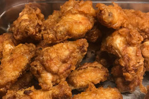 - Friteerattua kanaa ja ranskalaisia, sis. vehnää