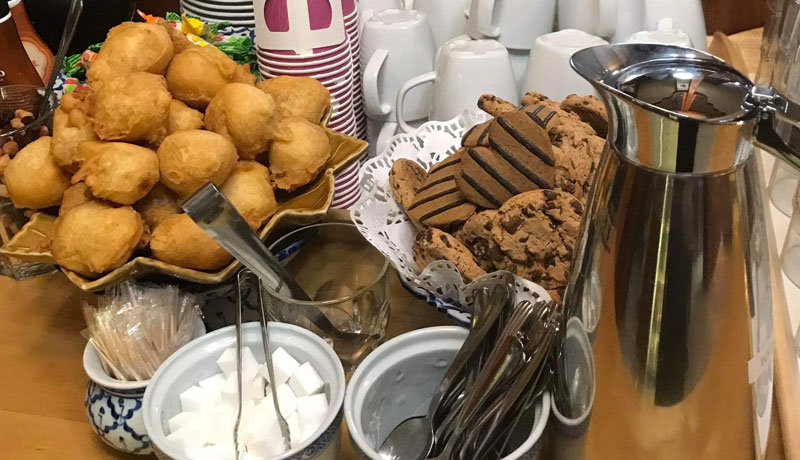 Lopuksi suu makeaksi jälkiruokapöytämme pikkumakeilla ja tuoreella kahvilla.Herkullinen thaimaalainen