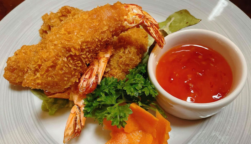 - Stir-fried prawns with Panang curry, coconut milk and vegetables