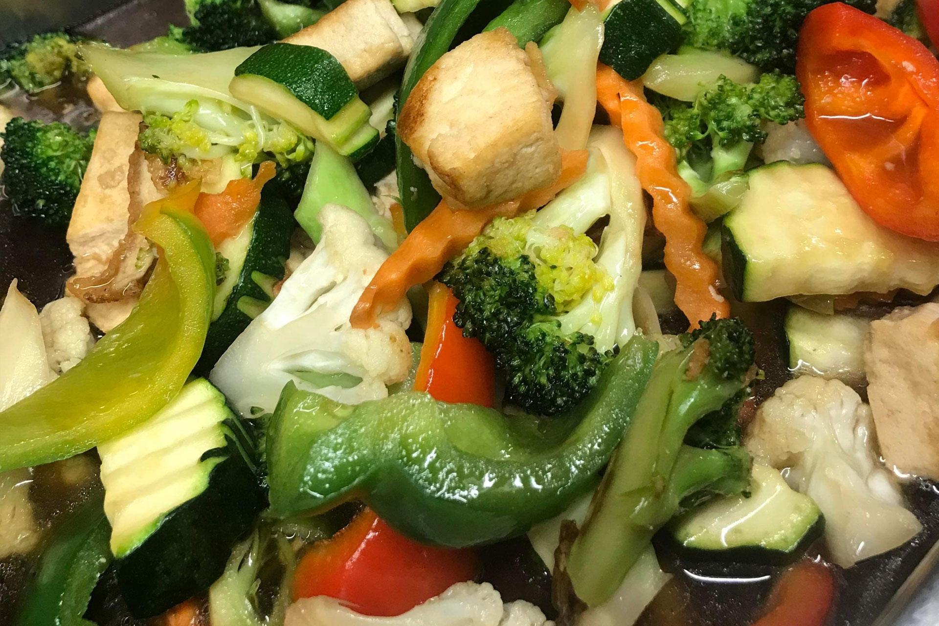 - Tofu, stir-fried vegetables with sweet and sour sauce, incl. soya