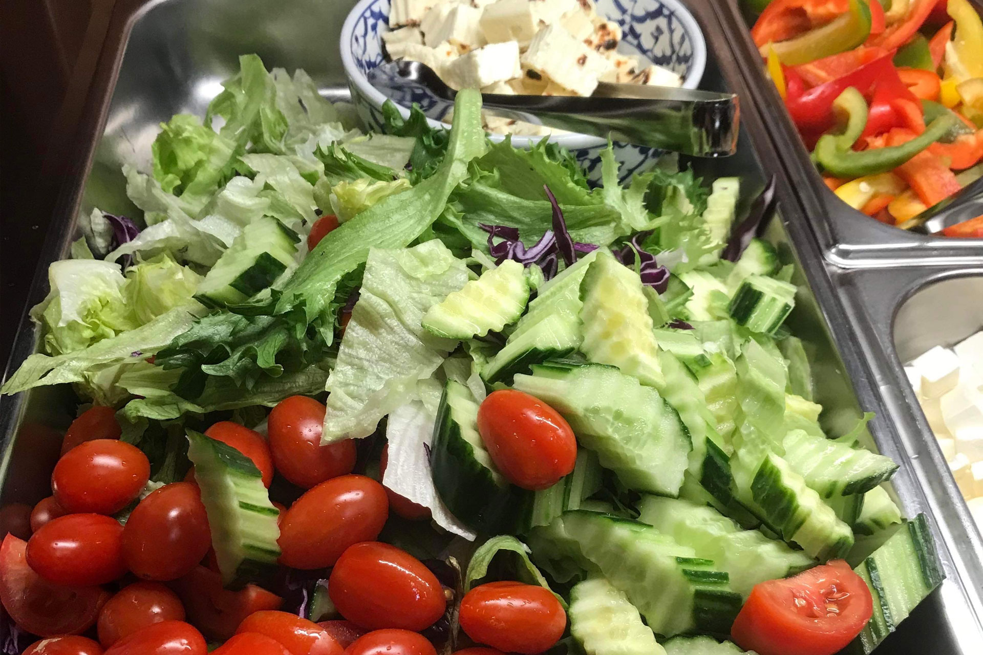 Runsaasta ja päivittäin vaihtuvasta liha- ja kasvisruokavalikoimasta on helppo löytää mieleisensä maut.