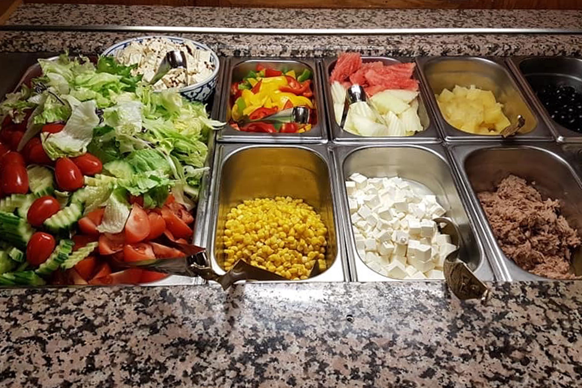 Herkullisesta salaattipöydästämme voit nauttia joko alkupaloina, pääruoan kanssa tai vaikkapa jälkiruokana, oman makusi mukaan.
